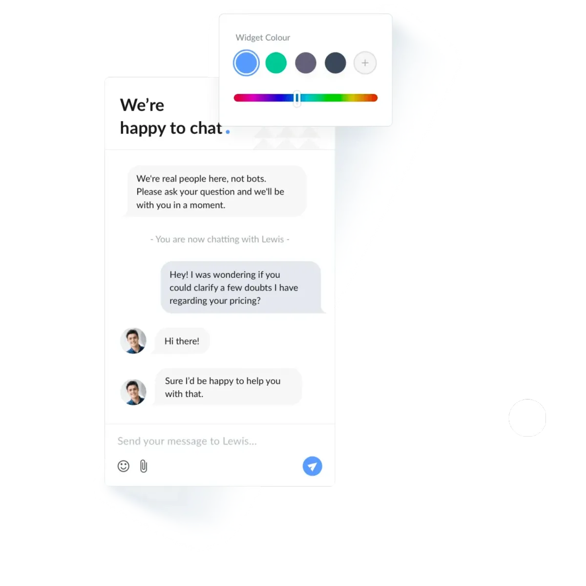 Infuse a personal touch into your chat window by customizing chat icons, colors, and greetings. Introduce chat participants by incorporating names, photos, or even an image of your business mascot, allowing visitors to connect with the personalities behind the conversation.